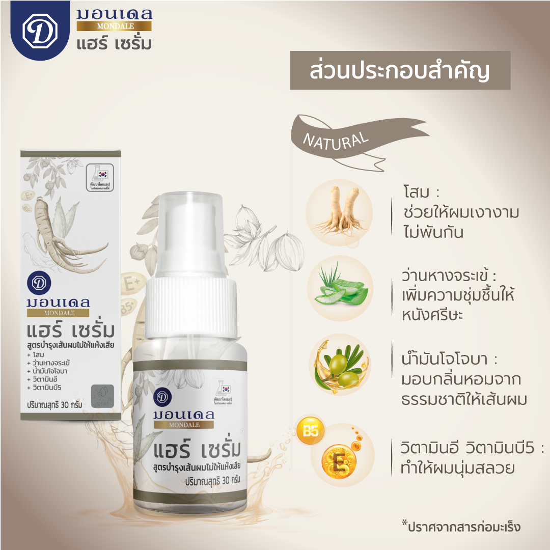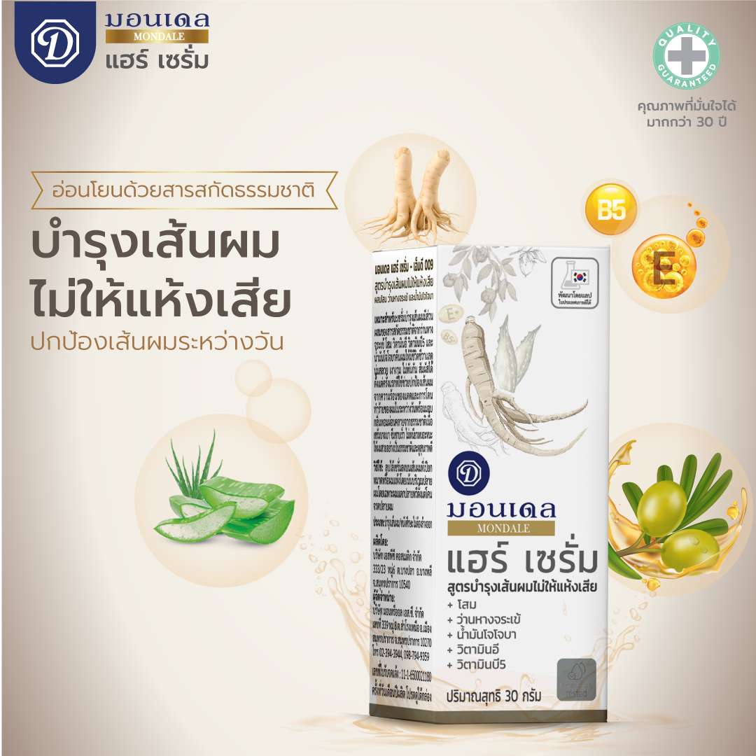 มอนเดล แฮร์ เซรั่ม ผสมโสม ว่านหางจระเข้ และน้ำมันโจโจบา 30 มล
